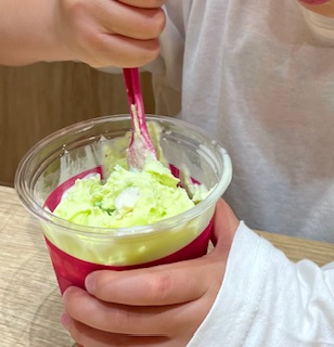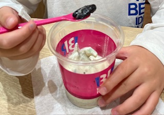 毎年この時期、31でアイスを買うと「次回ダブル購入→トリプルになる」というクーポンが貰えるのですが、この前ちょうど甥っ子達と夜ご飯に行ったので、食後にそのクーポンを使って2人共トリプルで食べていました。