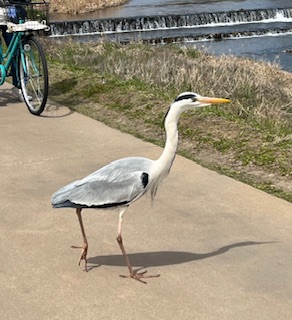 そのあと散歩がてら川沿いを歩いていたら、サギが!ゆっくり歩道を横切っていて、徒歩やチャリのたくさんの人に見守られながら川まで歩いていきました。。。かなり人に慣れてしまっていますね。