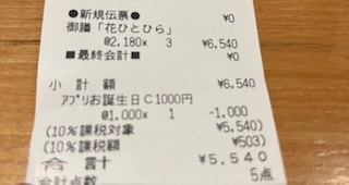 長次郎のアプリにバースデークーポンがあったので、両親と3人で夜に行って来ました。